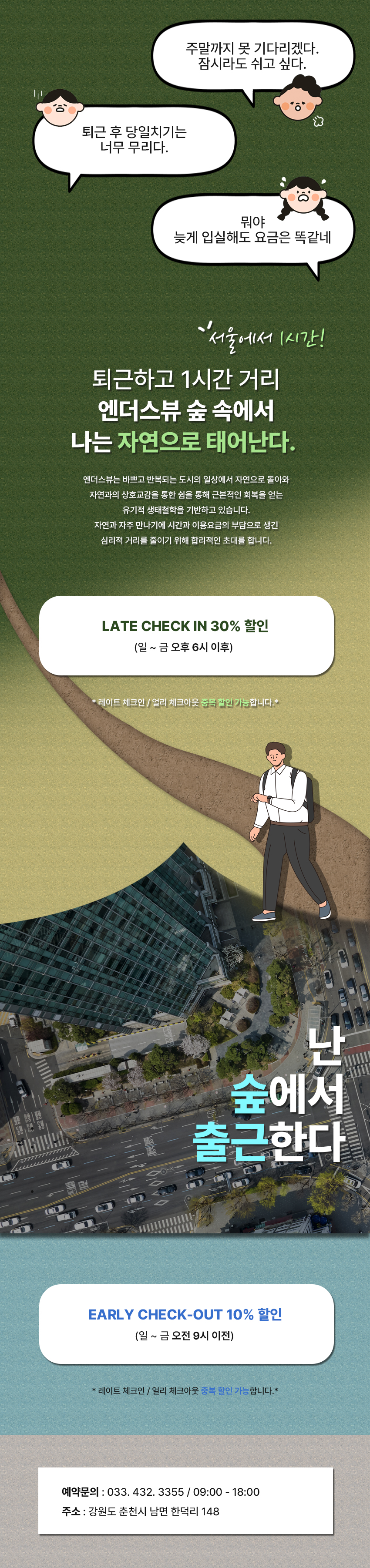엔더스뷰 주중 연박 할인 이벤트! 연박 예약 시 1박당 50% 할인